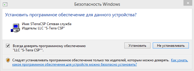 При инсталляции могут появляться окна, с запросом подтверждения установки программного обеспечения (Рисунок 15). Выберите предложение – Установить.