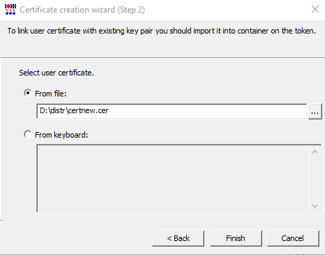 В окне Certificate creation wizard (Step 2) укажите сертификат пользователя (Рисунок 96):