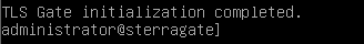 На экране появится сообщение TLS Gate initialization completed об успешной инициализации С-Терра TLS Шлюз (Рисунок 7). Если инициализация завершилась успешно, то при последующих стартах системы предупреждение о необходимости инициализации не выдается. Если инициализация завершилась неуспешно, то об этом выдаётся соответствующее сообщение. При следующем старте комплекса администратору снова будет выдаваться предупреждение об инициализации.