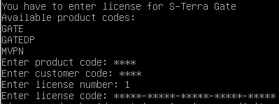 Шаг 4: Далее запрашивается лицензионная информация на модуль С-Терра Шлюз, с которым интегрирован С-Терра TLS Шлюз (лицензионные данные приведены в «Лицензии на использование ПК «С-Терра Шлюз ST. Версия 4.3» производства ООО «С-Терра СиЭсПи», входящей в комплект поставки).