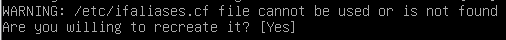 Шаг 5: На предупреждение об отсутствии файла /etc/ifaliases.cf введите Yes для создания файла ifaliases.cf (Рисунок 4).
