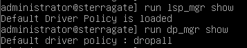 Шаг 10: При инициализации устанавливается политика безопасности, запрещающая прохождение всего трафика - политика DDP (Default Driver Policy- dropall) (Рисунок 9).