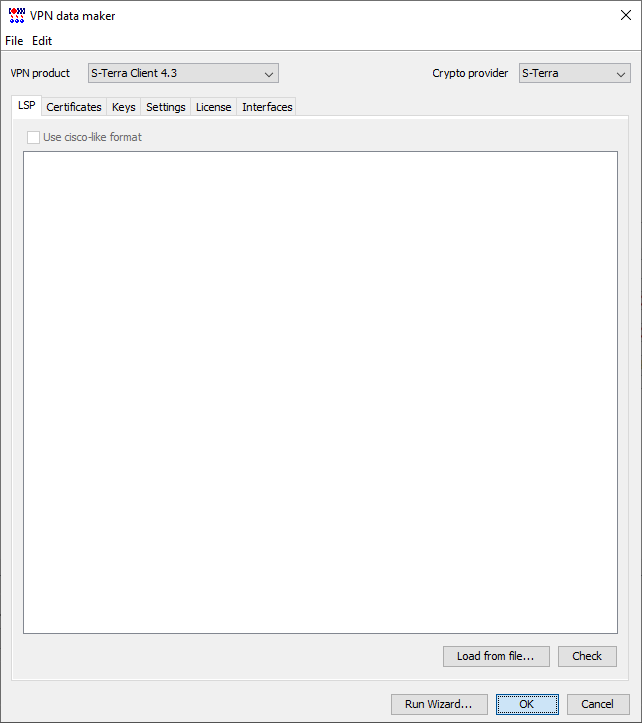 При создании учетной записи для удаленного клиента, в окне ‘VPN data maker’ в выпадающем списке VPN Product выберите S-Terra Client 4.3 (см. Рисунок 14).