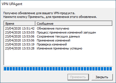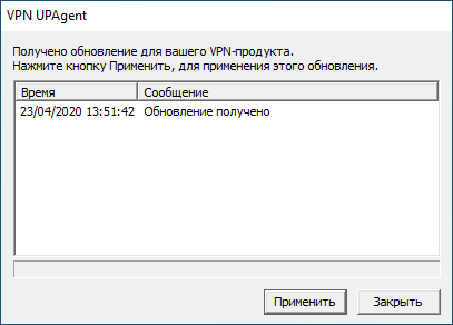 3. Будет сформировано обновление для Client1. На устройстве Client1 будет выведено сообщение о наличии обновления для «С-Терра Клиент» 4.3. Нажмите кнопку «Применить» (см. Рисунок 15).